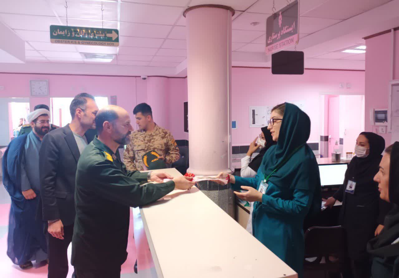 حضور فرمانده ناحیه مقاومت بسیج سپاه شهرستان تکاب در بیمارستان مهر امام علی (ع) بمناسبت بزرگداشت روز پرستار 1404